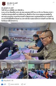 – ให้สถานีตำรวจนำช่องทางการเปิดเผยข้อมูลสาธารณะ (OIT) เปิดเผย ณ จุดให้บริการ และพัฒนาการให้บริการเพื่อสร้างความรวดเร็วและความสะดวกให้แก่ประชาชน ก่อนทำการประเมินแบบวัดการรับรู้ โดยมี รอง ผกก.(สอบสวน) , รอง ผกก.ป. , รอง ผกก.สส., สวป., สว.สส., สวป.(ชส.) และฝ่ายอำนวยการทุกแผนกงาน ณ ห้องประชุม ศปก.สภ.สอง