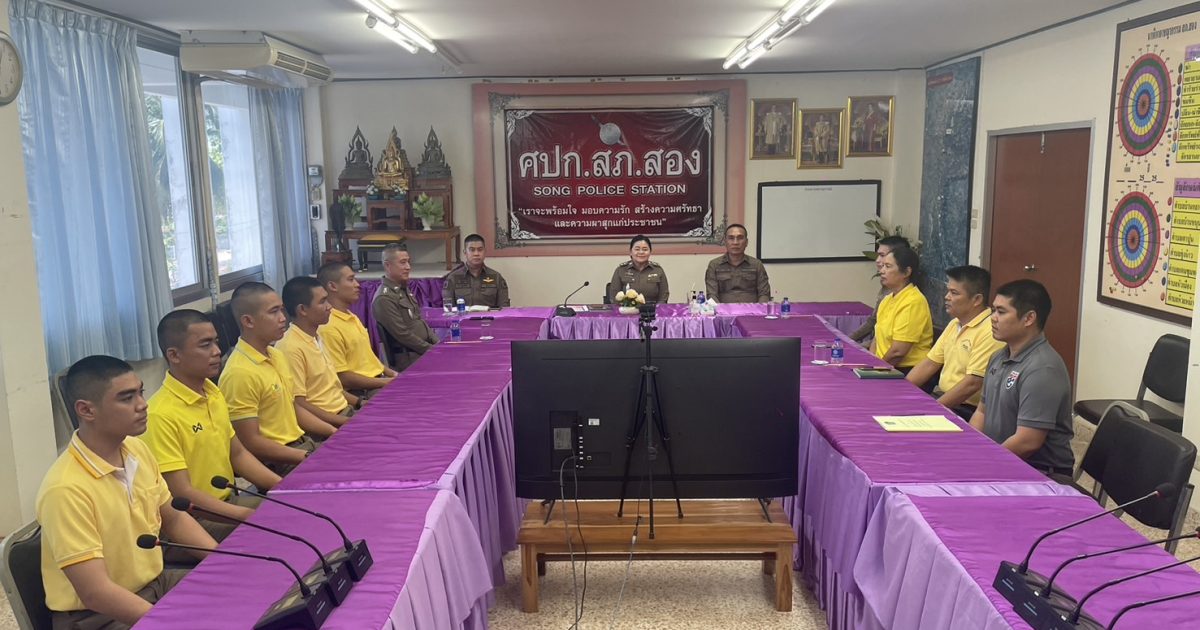 โดยการอำนวยการของ พ.ต.อ.บำรุง น้อมเศียร ผกก.สภ.สอง มอบหมายให้ พ.ต.ท.กังวาล เวียงทอง สวป.ฯ , พ.ต.ท.สมศักดิ์ ชัยวงค์ สว.(สอบสวน)ฯ ข้าราชการตำรวจ สภ.สองและนสต.ฝึกงาน รับการตรวจเยี่ยมให้คำแนะนำและการปฏิบัติงานสำหรับนสต.ฝึกงาน โดย พ.ต.อ.หญิง ศุภลักษณ์ พันธ์โกศล อาจารย์ (สบ4)ฯ และคณะอาจารย์ ศฝร.ภ.5 ณ ห้องประชุม ศปก.สภ.สอง